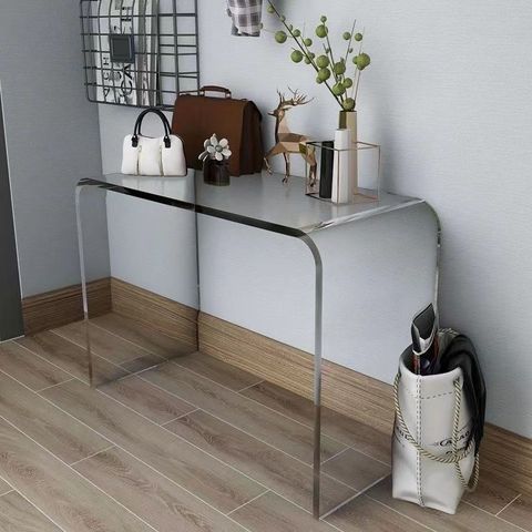 Tocador de acrílico moderno, venta al por mayor, escritorio de ordenador barato para dormitorio o baño, tocador lateral transparente para comedor
